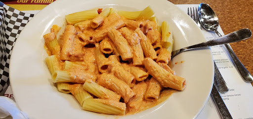 If I could give this restaurant less than one star, I would. I started my dining experience with 2/4 people at my table having to send back dirty silverware. When the waitress came back, she asked for our drink order without ever handing us a drink menu. I had mistakenly assumed I could substitute "veal parmigiana" for a cheaper "chicken parmigiana". When the waitress cut me off, I quickly wanted to get the passive aggressive woman away from the table. I ended up ordering penne alla vodka, thinking this easy dish was a safe bet. I began eating the dish and finding little chewy white squares in between the pasta. Looking back at the menu, I realized they were supposed to be pork. Luckily, there were only about 3 tiny pieces in it. My once "safe-bet" dish turned out to be a very regrettable decision. The waitress never once asked how our food was. Everyone at the table turned in their full plates saying no one wanted it to go. Finally when we went to pay, the cashier was the best part of our experience. She called over our server who began arguing with us that we never expressed our dislike of the food. If she had come over just once to our table, she would have known. After hearing the complaint, the manager never left the back, and sent the server to tell us they cant do anything about it. Everyone at my table left with a bad taste in their mouths from both the food and horrible service. Would not recommend.
