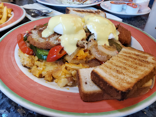 Its very convenient because there isnt many food choices in that shopping center. Its fairly recent construction, so it seems modern. Their theme is very kitschy 60s influenced diner. All the menu items have some kind of nickname for them. I get their corned beef hash with eggs. They call it "Corny Hash". They have a huge selection of meals, shakes, treats, and espresso drinks. Its a real diner with breakfast all day. Beyond that, the place is often not completely cleaned. The food is IMHO mediocre, but breakfast is good. Coffee is lame. The staff is average.