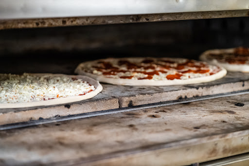 New location as of 2013. Ample parking, larger sit down area. In fact, you sit outside during warm weather. New Bar/Grill area in front... with nice large screen TV. Like their Hawaiian pizza and they ranch dressing slices.