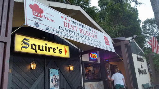 This place is OK for a burger but did not satisfy the pallet. Pipers Kilt in Eastchester is still the pinnacle of a fresh burger and fries youll eat in Westchester. First the atmosphere....Very cool. It is tuck away in a strip mall in Briarcliff Manor (where parking is tough) but dont be fooled, it was very relaxing and calming. It is old school....dark, with a very blue collar feel...perfect for a burger place/pub/bar. The bar is the center of the "first room" and thats a good thing. My wife ordered a Stella Artois on tap and I had a Makers on the rocks (very generous pour) and the price for both were more than reasonable. We needed a drink because there was a bit of a wait. On that...there is no host/hostess....there is a book you go up to and sign your name and # in your party....pretty cool. Also....it is family friendly, toddler friendly, etc. which is great for young families... Just a bit tight spatially. Second the dining room/wait staff....again really friendly and homie. A bit tight, but not bad. Now the food. I ordered a Bacon cheddar burger with fried onions "As rare as you can legally make it". This is always my sticking point. If you bring out a burger that is medium rare, medium, or medium well....you lose me. And thats what happened. My burger came out and it was medium at best. Not only that it was relatively dry. Ive had burgers that came out medium but had high fat contents in the meat and thus still juicy. This leads me to believe that the burgers here are not hand made fresh chopped meat burgers and cannot be made rare. The bun was soft and fluffy but toasted which was nice. The fries were very good (steak fries basically, not my favorite) but the honey mustard was delicious and plentiful. The price though was very reasonable here. For a couple to go out to dinner, have a beer and cocktail, (2) burgers and a coke but spend only around $50, very reasonable. Lastly.....and this is my biggest turn-off...it was cash or AMEX....little did we know. We had to go to their ATM machine (which i do not like to do, bad theft experience) and take out cash to pay for dinner...that was it for me. I will drive 35 minutes south to Eastchester instead of 25 minutes southwest to Squires for a burger any weekend!