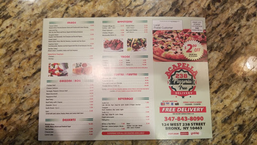 This pizzeria Restauran is amazing ! I love the pizza and the pasta, the place is very nice and clean, I love the pizza Fresca and meat lover,, I order from there almost every day,,