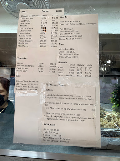We take away today very first time! Haleem, chikar chole naan and kheer is to die 4, seekh kabab are spicy like make you skull sweat spicy!!! True panjabi would love it ! We 30 miles drive but will come back every chance we get ! Prices are reasonable [ picture of menu not listed is loaded Lastly review will not be complete if did not mention sister on counter is very polite and sweet !
