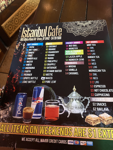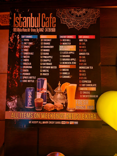 Pros: Good hookah, customer service and the environment is very relaxing . Cons:nothing to eat, its important for a bar to have a snack bar or deli if not people will be hungry and they will looking for another place to eat. And be aware of the weekends entry fees they dont let you know this until they bring you the bill (nvm they have the sign outside the door.