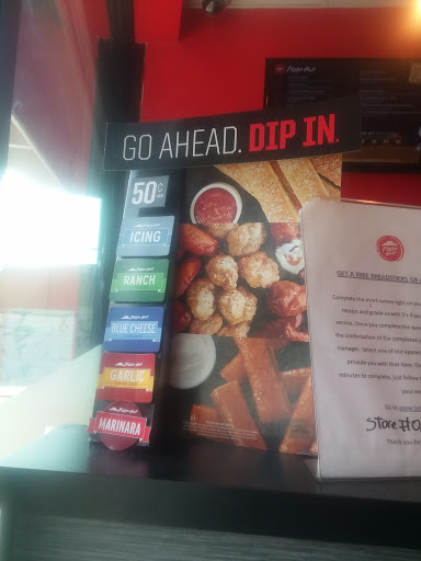 That was the worse pizza huts ever i dont recommended to no one i had to way a hour and ten minutes for my order then the person that was infront taking the orders was mad slow then she was dealing with the pizzas with no gloves and nothing in her hair to cover her hair evertime the phone used to ring she pick up the phone then go to the back to deal with the pizzas then in top of that she had people from outside go to the back to have a conversation when the place is full of people very very unprofessional i would never visit that pizza hut again