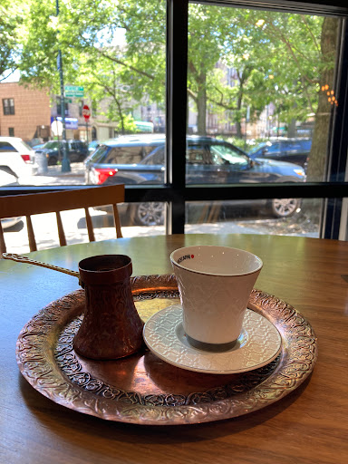 Very good coffee, reminds me of when I lived in Kosovo. Have the option for Turkish coffee and teas as well. Tasty snacks, mostly baked goods (Not healthy but certainly yummy). Lots of light. Ample room for seating. Def recommend.