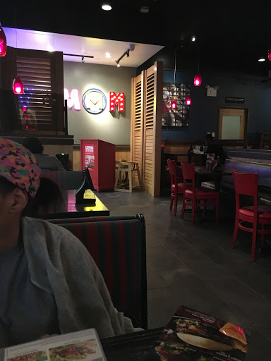 Server was extremely rude! We wanted substitutes for the beef nachos because we dont eat beef and he told us thats stupid and a waste of money. Our food took so long he came over and said the manager would give us 10% off and one of our dishes would be free, so every time something went wrong or the wrong food was bought out (we asked for no bacon because we dont eat pork, there was still bacon on the order) he would get an attitude and say ok well take it off the bill as if we were asking them to do that! Then he made a big scene and was yelling in front of everyone "its just 3 dollars! You want us to take three dollars off the bill fine! Fine! It was completely and utterly disgusting and embarrassing. I would NEVER come back to this location or any location for that matter ever again! Wish I knew the severs name but he never came over and introduced himself he simply was in a rush to take our order because he had other tables, which we understood. The reason we remained so calm is because we understood he had other tables and probably had a long night but that doesnt mean take your frustrations out on paying customers.