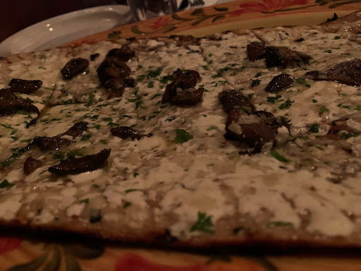 Boring menu with OK food. We waited for hours for our vegan pizza (the rest of our food came) and each time someone came by the table we asked for it. And still didnt bring it. We had to ask for it to go and as I write this, they still have brought it. The hostess was really rude to begin with and when we sat down there was pizza stains on the curtains. The young man who brings the food is as confused as we are about why we havent received our pizza. Eventually the waitress offered it for free after it was clear how upset we were but we had to keep demanding for the pizza they apparently forgot. Mediocre food. The pizza that we waited for was cold when we got it. The only redeeming quality was our semi nice waitress. Not gonna come back to this place and Im surprised that for $15 a pizza this kind of service occurs. *also, the lights flicker but it doesnt actually look nice it looks like some faux Disney restaurant without the fun but all of the wait and high priced mediocre fast food type meals*