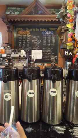 Cool scene at Slave usually. I dont drink coffee, but I do enjoy their chai latte. Customers are always commenting about how good the coffee is and also how its reasonably priced. Better than Starbucks!