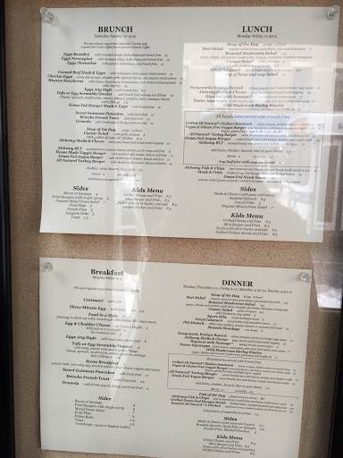 This place is awesome. Ive been here 2-3 times for brunch and once for dinner. I always get the Eggs Benedict, which is pretty awesome. I got the burger for dinner one night, and it was delicious. If you go to brunch and love coffee, get a cup. Its fair trade organic and is delicious. Servers are always super nice (especially Hayden) and the decor is typically awesome Brooklyn - booths and brick walls, and theres a bar. Highly recommended.