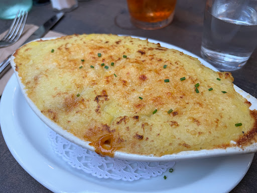 Service excellent. Burghers were really good. Mac and cheese very good. Dont get fish and chips. Very disappointing. tasted like they were previously made and warmed in a microwave. Hanger steak was tasty but chewy. Great Beer selection and white wine was cold. Bottle of water on table a nice touch.