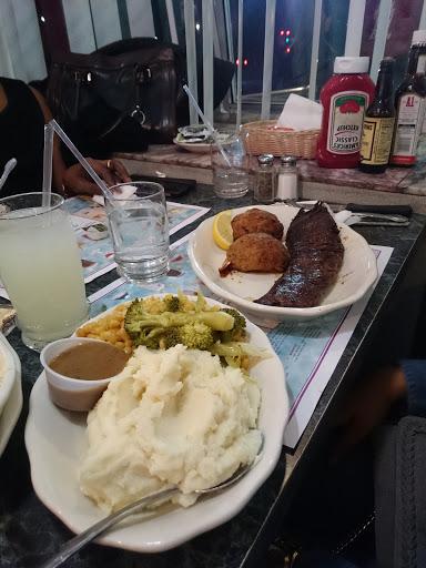 The food was horrible. I ordered a fried chicken basket and the chicken was not seasoned well. It actually tasted like they bought it from KFC and overcharged me for serving it. My sis ordered fried shrimp with veggies. Everything was frozen. Not fresh. She did not enjoy hers and had to pay $27. My bro ordered basic breakfast and he said the bacon was terrible and the french toast tasted frozen as well. The ambiance was not impressive. It was dark and gloomy. The floors were dirty and I saw trash and gum on the carpet. The waitress that took my order smelled of cigarettes. YUKE! There was one lady serving the whole section of the floor and she had no time to really pay attention to the fact that we didnt enjoy the food or service. I would not recommend.