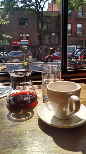 Great small business run by a couple of brothers (?). I came in as part of my Brooklyn coffee crawl when I first moved here (BK). Beautifully designed shop with tons of seatings in the back or at the bar. Good coffee and friendly service too.