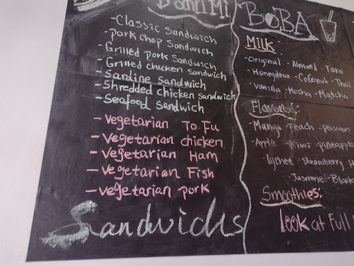Delicious Vietnamese sandwiches at a very reasonable price. The bubble tea flavors are also great. However as there is very little space in the store, it is probably a good idea to get rid of the seating and make it all takeaway.