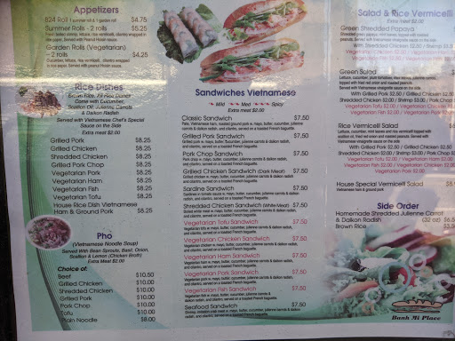 At nearly $10, the salty bland pho is overpriced. Called ahead for seafood bahn mi – the person on phone said it was "shrimp and crab". When I opened the sandwich, meat was microwaved surimi sticks – which is like eating fishy-tasting water wienies. Classic bahn mi has burger-like chunks of pork inside – nearly inedible. Chicken bahn mi is only thing remotely good here. I have given this place three chances. No more.