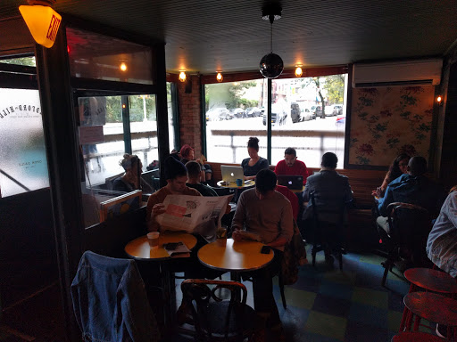 his is one of my favorite coffee bars in the city, they are so much more than just coffee. Much like any bar in Paris, this place serves great coffee in the morning, and beer and wine at night. I honestly dont know why more places dont do this, its such a great idea. The lattes are hand made, 100% delicious, worth the wait - this isnt Starbucks it takes more than 30 seconds to pump out a quality drink. The beer selection rivals much bigger paces - quality over quantity.