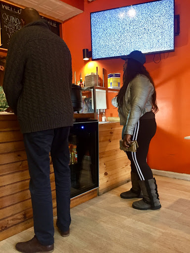 I had a salmon burger my first time. This time, Im having the quinoa/kale salad. Both were/are delicious! Customer service was great. Extremely accommodating too. I am able to charge my phone and complete some work on my computer. Ill keep coming back.