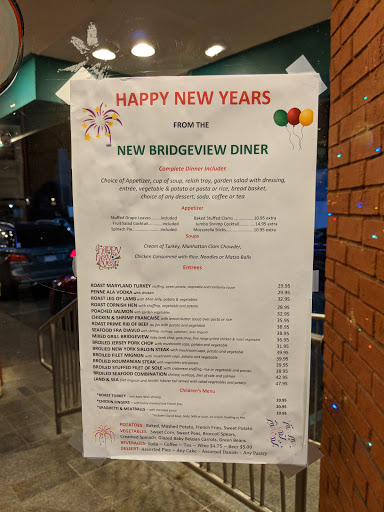 The food and service are always satisfying and the atmosphere is pleasant! The menu has a wide variety of appetizers, entrees and desserts to choose from. The Lunch and Dinner Specials are very reasonably priced and the portions are very generous. The Bridgeview also has a separate room for private parties and a gigantic parking lot which is very hard to find in Bay Ridge restaurants. We have introduced the Bridgeview to many people from out of town and locally. So far, everyone was impressed with the polite staff, delicious food and friendly atmosphere!