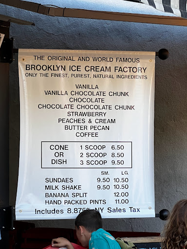 Brooklyn Ice Cream Factory served rich, delicious ice cream with an assortment of flavors to choose from, some of the classic flavors are the best, cant go wrong choosing them. I was feeling adventurous and decided to go for three scoops of deliciousness. It was super fulfilling and I was stuffed for a while, but I have no regrets! Im ready to go back for more. One of my scoops, I chose coffee, it was very good, but just a warning, the coffee is so rich and you can almost taste the caffeine, so if youre not a huge coffee drinker, ask for a sample before you commit to a scoop! Im definitely planning to go back!