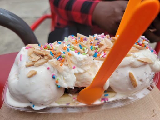 If youre visiting DUMBO area, one of the food stops you should probably make is here. Theyre right along the waterfront and they have about 8 different flavors. Nothing out of the ordinary... just your vanilla/chocolate type ice cream options. The catch is they have 2 lines which is VERY confusing. One line to order inside the building, another line to order ice cream on their outside stand. The outside stand DOES NOT receive orders for the sundaes or banana splits so make sure you get in the right line! At $4/scoop you get a HUGE scoop which probably equates to two normal scoops (The boyfriend and I can share). Add a 50 cent waffle cone and youve got yourself a creamy, flavorful and large portion of goodness on a hot day.