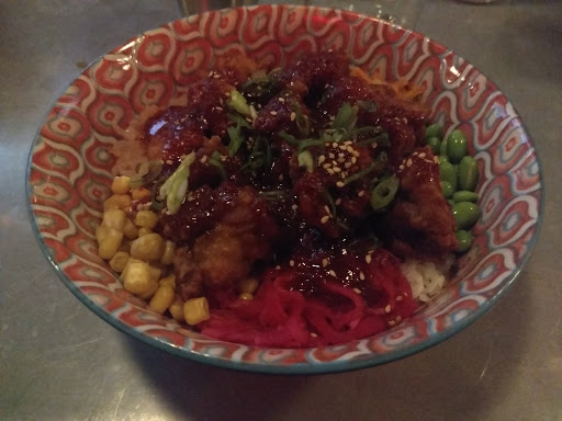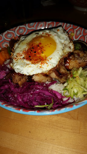 The place feels like Brooklyn and the food is good but if you order a bowl with the fried chicken you will get only three pieces and a lot of rice to cover..