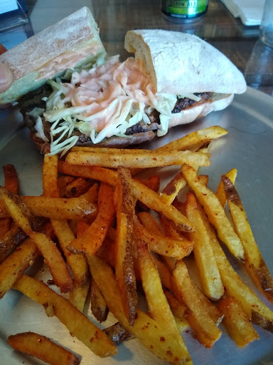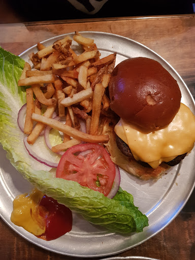 Im giving it 3 stars because the food took 1h to come to our table after we ordered, and the place was not so busy. The waiter told us the reason was the fact that our party was big (8 ppl). As we were a big party they decided to serve other tables with smaller parties that arrives later than us (not nice at all!!!!). To apologize for the delay the waiter offered us a liquor at the end of the meal and this let me to add one more star to this review. Service need to improve a lot! They did not bring us napkins, cutlery and dressing for the salad. Food was cheap and decent. I got the veggie burger with avocado and it was good. A friend took the knickerbocker burger and said it was really good too. Fries that come as side are disappointing as are greasy and not crunchy at all (I had the impression they are prepared before and just warm up in a microwave before serving).