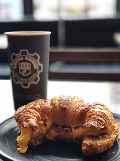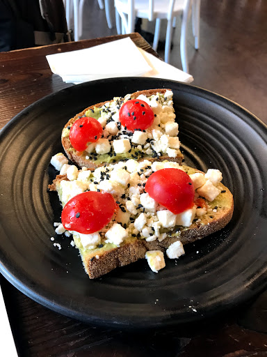 Very laid back, lots of seating, can spend a lot of time here no problem. Good barista though staff seems irritated. Interesting menu. Food is pretty good. Wierd decor combination repurposed wood and iron. Bathroom door had no handle or lock.