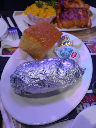 Love this food place. Food comes quick And taste delicious. There are veggie options and drinks. Cocktails and other things. There is even music playing and a big tv for entertainment. You get cupcakes in holidays and on birthdays. Love it! Keep it up Dallas BBQ