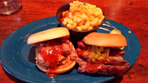 Im so disappointed. I would have actually enjoyed my rib and brisket plate quite a bit if it wasnt barely lukewarm. And it had nothing to do with the time it took to get from the kitchen. My order came out very fast. That means it was lukewarm IN the kitchen. Not cool... not cool at all. I really like the fact that you get two nice sized sides included with your meal. The collards were decent and quite spicy. Almost too much spice vs. flavor. I wanted to taste some smokey turkey in the greens. It would have made it just like how my Mom used to make it. If they cant manage to get the flavor out of the turkey, they should just go whole hog and put in a ham hock. Collard greens just dont have enough flavor on their own and need all the help they can get. The St. Louis pork ribs and the brisket were smokey and juicy. No need to add sauce at all. They would have been perfect if they had be served at the proper temperature. The included cornbread is good but on the small side. Its a step above Jiffy. Not overly sweet and with a nice cornmeal crunch to it. Also on the plus side, the Donkey Punch was tasty with a good kick. I did not like the Mac & Cheese. It was the first thing I tried and it had this weird sweetness to it. It was sprinkled with paprika, but I dont recall paprika being sweet. It managed to be creamy without being greasy, but it didnt have a proper cheese flavor. Again, disappointed. I dont know... maybe they had an off day. It was Valentines Day and they were quite busy. But that really isnt an excuse to serve cold food and does nothing to explain the Mac & Cheese. I may try another location in the future. Hopefully, it will be a 4 star experience then.