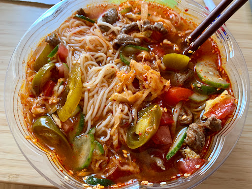 Place that has two tables. Has small menu choices. If you want to try some authentic korean dishes this place is for you. Try cold soup kuk-si