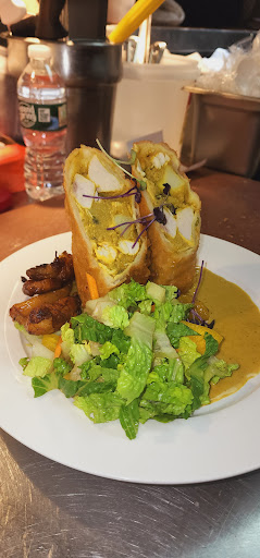 Decent food, horrible service. A day excursion to Coney Island for me and 5 of my friends led us to Footprints for dining. They placed two tables together in the center of the restaurant to accommodate us, which was a disaster. The tables were off balance not sure if the floor was unleveled or if the tables were different heights causing the table too continuously Rock. We were visiting around 2pm on a Saturday, I was ask several times to pull my chair in to allow a "raw food delivery " from a grocery vendor, which to my surprise was delivered mid day on a Saturday through the main entrance of the restaurant. This made me wonder if they had a back exit seems like the proper way to handle a delivery during peak time. Also upon going to the ladies room I noticed they had additional seating upstairs, where approx 6-8 ppl were seating along with the manager. Not sure why they wouldnt seat us there in a more comfortable setting. The restaurant wasnt packed so we couldnt understand why our food took well over 45 minutes to arrive to our table. One of my friends didnt receive her meal until we were halfway done and when she inquired about her cod fish appetizer the waitress responded "they didnt drop yet". After ordering my dish the waitress came back about 5 minutes later to notify me they were out of tofu. I was disappointed but really didnt see anything else so I decided to stick with the dish ordered minus the tofu and she assured me the price would be adjusted. The entire time we sat at the table the waitress nor management checked on us we ask the busboy for water the only person noticeably working and I guess he forgot he never returned with water we waited for condiments, the check you name it. The service was lousy. I really wanted to give this place a chance but when we decided to discuss our concerns with management his approach was brutal and offensive. He had a retaliating demeanor and basically said although food was delivered slow we came at a very busy time and we did eventually get our food. The nerve of him. He also called out the waitress in front of us in the middle of the restaurant looking for someone to take the blame!!! Btw remember the price adjustment for my tofu dish, well it was given to me I think $3 off however when I reminded the waitress I received the most attitude. I was so ready to get out of this place along with the bad energy I was experiencing. By the way we had no problem with the 17% gratuity added to parties of 4 or more however we expected better service or at least to be treated with respect. They also have hidden charges. 3 of us ordered the same meals to go as we placed our dining in order, well after viewing the receipt dining meals had an increase of approx $5. Why ???Ive never heard of or seen this before. I normally check reviews prior to dining and I must say the negative feedback they receive is quite accurate. I will never return to this establishment ever again I hope they take time out and read their reviews and work on ways to improve. It sucks because the food was tasty but doesnt make up for poor service.