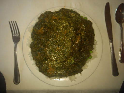Probably not the cleanest place. The utensils werent cleaned well. Linty and dusty all over. Place didnt smell that good upon entering. The food was alright. The spinach dish wasnt that tasty. The curry was good. Tap water available. The restaurant is small but service was good. Didnt look like bathrooms were available. Street parking wasnt difficult to find. Probably good to order for takeout.