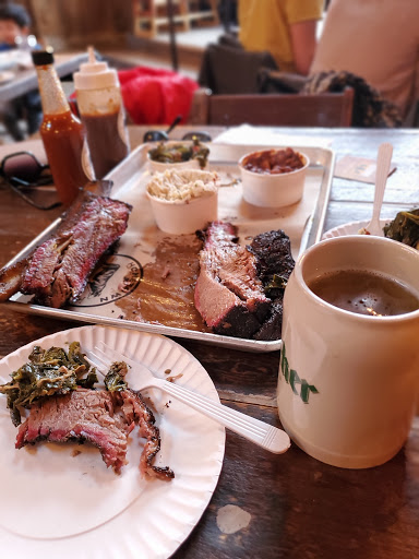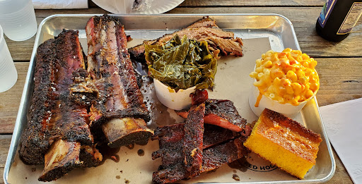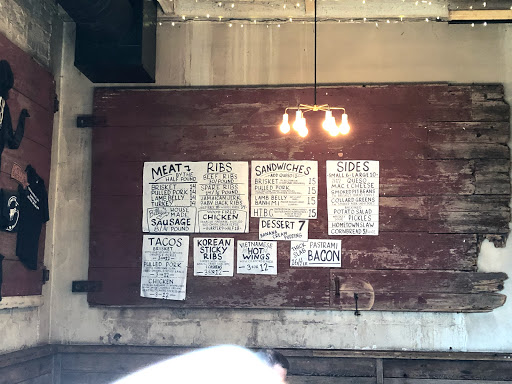 My wife and I planned a date night out and read the Google Reviews before heading over to this place. We were excited to get there and the thought of eating their ribs made us more hungry. The site said that the line is usually 60 mins long. I can only assume since it is Memorial Day weekend that it added another 50 mins on top. The Live music heard from outside was very inviting. Their was even a bartender staff member who walked the line who asked everyone if we were interested in buying a drink while we waited. Everyone on line near us was very nice and it was their first time their as well. By the time my wife and I reached the door we could see that the restaurant was extremely packed. We could also see that it was first come first serve seating. Everyone has to seat themselves after you place your order and pay for it. That is definitely something everyone who is attending this restaurant should know up front. No wait staff to serve and take your order, & if you decide to want more food, you would have to go back on the line in order to get it. Which brings me to the food, the Beans were the BEST!! The Spare Ribs ran out. The Lamb ran out. The Pastrami ran out. What???!!!! By the time we got to order, the Beef Ribs ran out. I dont know about you, but my wife & I were not happy. We ordered the Korean Spare Ribs, the Fire Chicken, Brisket & 4 sides. Chicken was cooked well, but needed sauce to assist in the flavor. The Korean Spare Ribs taste was similar to going to a Korean Restaurant. The Brisket had a lot of Fat, but the meat was very tender. As for the sides, the Pit Beans were Amazing! Hearty, Meaty, Perfect. Collard Greens need work. ColeSlaw just needed a little more flavor. The Cornbread was dry. The drinks and the bartender both were Amazing! He made our night better since we were disappointed with the food. We even tried the Cherry Moonshine Shot....Definite Must Have! All in all, we have never been to a Restaurant that ran out of the main dishes...Not a Good look. Think twice before planning to go, especially on a date.