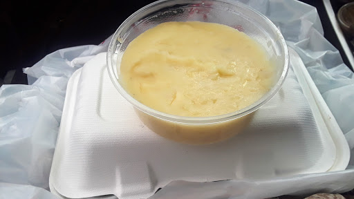 A Grilled chicken was nice and juicy. The side dish, baked beans was good. Reasonably priced. The space is not very nice, yet the fort green park nearby can be a better place to go eat.