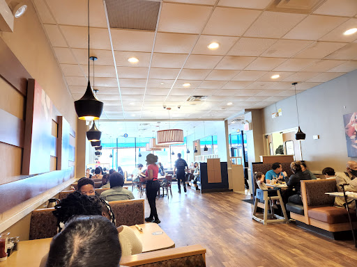 First and foremost the decor of the location is great. Instead of carpet on the floor they have hardwood floors. The lighting and its hue is set beautifully. It gives a certain ambiance to the dining experience. Unfortunately thats where the praise ends. Walking in the host was friendly and show me and my companion to a booth table. The waitress after a couple minutes of us being seated introduced herself. As we placed our order everything seemed fine. The only caveat was that they wasnt serving ice coffee. The waitress said that they dont serve ice coffee anymore, yet it was still on the menu. My companion ordered the Tropical Splasher. About 10 minutes go by and our drinks didnt even arrive. The food came out and my Pumpkin Spice Waffles werent even warm. The friend chicken breast that came with it was okay. Nothing spectacular. It was seasoned well surprisingly. A couple minutes after the food came out I caught the attention of the hostess who helped the guest adjacent to me and told her me and my companion didnt receive our drinks yet. The waitress instead of the hostess came back with the drinks and apologized. The Tropical Island splasher my companion got barely had any ice as if it was sitting out or prepared in a rush. I had a coffee. The sugar tray that I was given was mostly empty. I also didnt recieve any of those little cream cups that are given when you order coffee. As me and my companion finished our meals the waitress took about 15-20 minutes to give us the check. My companion immediately put her card on the table. About 10-15 minutes passed and the waitress still didnt come for the check but passed us twice. I getting irritated walked over to the manager at the register and told her I wanted to pay. The waitress came processed the payment and gave me the receipts to sign. I signed at the table next to the register. Took my receipt and my card payment receipt. Me and my companion was get our belongings when the waitress hurried over to us and accused me of keeping the signed card payment receipt. I told her that it was on the other table. I felt extremely angered and disrespected by the waitress. I do not think this location is a good one. Hopefully another time I go and theres a different staff things may be better.