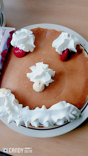 I went last night around 7 PM; the host was nice; my server was nice but lacked customer service skills; i ordered the strawberries and cream cheese combo & 2 kids meals for my child; he brought COLD food & strawberry crepe with no cream cheese.. When i asked him where the cream cheese was he was trying to convince me their wasnt one with cream cheese then opening the menu stating i only ordered the strawberry one... I asked for my food to be warmed up and just ate the crepe (very plain & gross) he brought out my food again; now warm but extra crunchy hashbrown stale turkey bacon & hard scrambled eggs