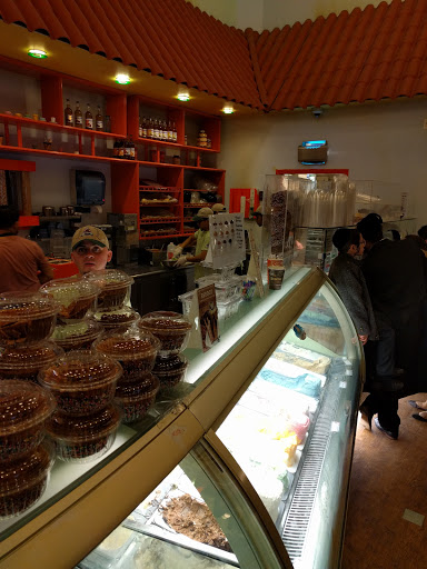 Great Kosher ice cream house. They offer ice cream, smoothie, fresh juice press, sandwiches and salads. 2nd floor has more seating area. Store opens till late but i came once around 9:30 and i couldnt order a sandwich. The location in Boro Park is bigger and better service.