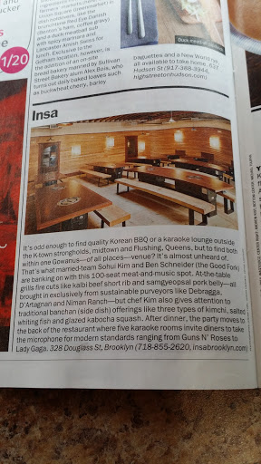 Dining Room and Bar are nicely designed and spacious. Karaoke rooms are also nice. Food and drinks are good ... but my gripe with this place is cost. One hour of Karaoke (room for 6-8), and dinner and drinks for 4 adults and two toddlers came to $400 (admin charge included). Seemed about 20-25% too high. Which by the way is sort of the standard for Brooklyn restaurants of this type; upscale ethnic food served in dining rooms with reclaimed wood, etc. As much as I enjoyed it and welcome it to Brooklyn the cost makes its hard to imagine choosing Insa over my K-Town faves.
