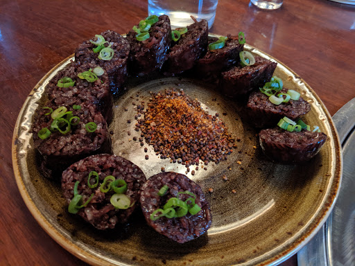 As I waited for the rest of my party the male bartender (tall, beard, brownish hair) gave me a good dose of Brooklyn attitude by just looking at me and not asking if I wanted a drink. And its not a big bar and the other two bartenders were cranking out drinks and one of them helped me after the afore-mentioned hipster just stared at me. Not a great start, but Im born-and-raised in Manhattan so this only affirmed why I rarely venture out to BK. On to the REAL service...host seated us promptly once the rest of my party was on site. Excellent job by our server advising on menu selections based on our tastes and just being an attentive and knowledgeable food server. Mandoo was solid, albeit unspectacular. Banchan was limited but decent, if overall unspectacular (meaning I dont even remember a dish that stood out). Galbi was marinated to perfection and the Squid & Baby Octopus bbq was tiiiiiiiiiight! Soju was from a local BK brewery and I thoroughly enjoyed a craft soju very the harsh taste, yet potent effect of Chamisul. I would definitely eat here again and even wait for 10 minutes staring down the afore-mentioned bartender.