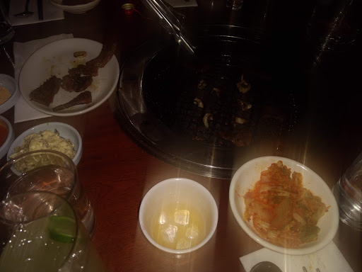 Because Korean restaurants are less ubiquitous than Thai, Japanese, or Chinese restaurants in NYC, my review probably skews upward a little simply because it feels slightly unusual. Nevertheless, the food here is definitely very tasty! The restaurant was designed for groups as there are almost no small tables and almost every table features the traditional bbq grill in the center. I suppose the expectation is that people will find their way to the back rooms for karaoke after dinner, but at around 7-8pm I hadnt had enough to drink yet and it wasnt very appealing. All in all, its a nice place and definitely worth a try!