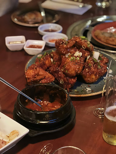 The wooden interior and lighting is beautiful. Staff are really friendly and nice. You can tell the ingredients are extremely fresh and high quality. All the Korean food is original to its taste and prepared perfectly; not too salty, great flavour balance and texture. Highly recommend the Korean Fried Chicken, Yangnyum Galbi, Yukgejang but honestly everything was so good. Great craft beer and natural wine selection. Oh, AND THEY HAVE KARAOKE!!