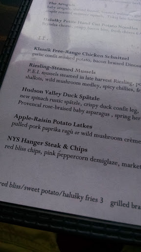 one of the more underrated restaurants in park slope. they have added a couple of items to their very meat heavy menu that provide welcome relief from the onslaught of cholesterol; still - the best reason to come here is the sausage platter and eastern european beer.
