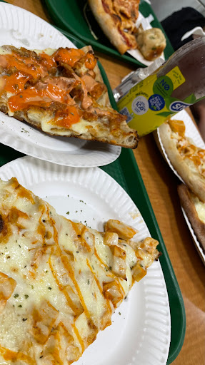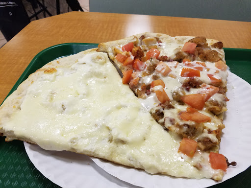 Too many of their dishes are made with bacon, pork sausage or some other such nonsense.. Even the items that look bacon-free contain bacon blended in. Buyers beware! That being said, I did find a slice that was bacon free (white pizza) and it was pretty good.