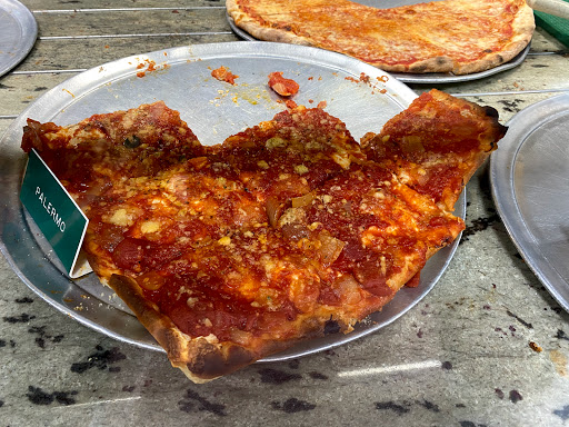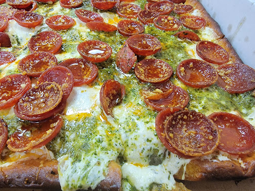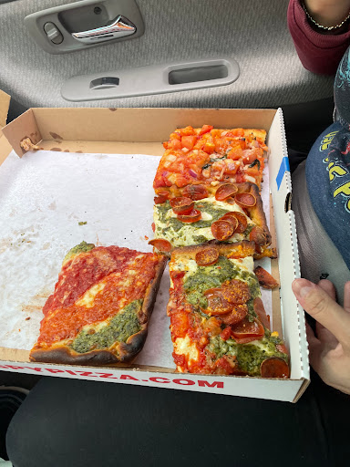 The place has a nice old school feel to it complete with a brick pizza oven and pizza boxes stacked all over the place.I ordered a vodka slice which was good it wasnt the best slice I have had but it was good.They use sesame seed pizza dough which was a first for me.The staff was friendly they took my order quickly the restaurant was clean and the bathrooms were clean as well.I would recommend the place if someone was in the area and I would go back