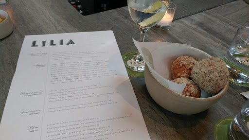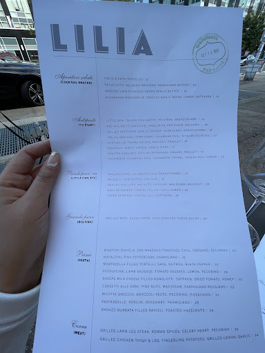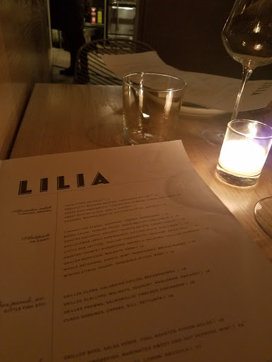 TL:DR; The food and drinks are exceptional, but unfortunately overshadowed by the standoffish, pretentious and severely lacking service. And a large chunk of ceramic in one of our dishes. My wife and I stopped in on a Friday night without a reservation, taking a seat in the small cafe section in rear to wait for a table to open up. While waiting, we ordered two of the traditional Italian cocktails that were both excellent – one being possibly the best example of a classic Negroni Ive had. The bartender also provided some light and tasty bar snacks made in house. Two seats opened at the bar. Our seat were by the door, subject to some cold drafts as people came in and out. In a pleasantly thoughtful gesture, we were offered blankets if needed, though declined. The evening then deteriorated. Our waiter was surly and indifferent from the outset, apparently very put upon while having to describe the evenings specials after knocking over a candle and spilling wax on our menus. Laughing it off, we ordered one of the specials, two of the Piccoli Pesci items, two pastas and a glass of wine. Starting with the cured sardines and grilled scallops – both were excellent, though the sardines may not be to everyones tastes as the curing process is very vinegar-heavy. This was followed by the special, ember grilled potatoes with a generous portion of shaved black truffles, also delicious. At this point my wine was yet to be seen. Our waiter appeared to remember and brought over a bottle to pour a taste... and promptly disappears for the next 10 minutes, while Im left to ponder if Im meant to serve myself as much as I desire from the bottle left behind. She finally reappears to fill my glass and then ask me if it was fine.I think that usually goes the other way around? On receiving our pasta dishes (Mafaldini with Pink Peppercorns and Parmigiano Reggianoand, Fettuccine with Spicy Lamb Sausage, Tomato Passato andFennel Seed) and enjoying a few mouthfuls, I bit into a penny-sized shard of ceramic in the Fettuccine. It appeared to be a large chipped piece from another bowl, matching the ones our pasta was served in. We brought this to our waiters attention where her reaction was to mumble sorry and place another order. The second dish was brought out quickly, though by this point we asked to have it packed to go and requested the check. Once arrived, not only were we still charged for the Fettuccine con ceramica, we also had an order of radishes and two additional glasses of wine added to the bill. Again, we brought this to the waiters attention and were curtly presented with a corrected bill. Sadly, I cant recommend a visit to Lilia. The space, drink and food is wonderful for the most part, but soured by the rude and lacklustre service.