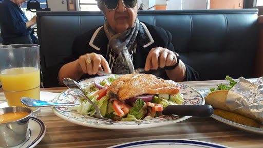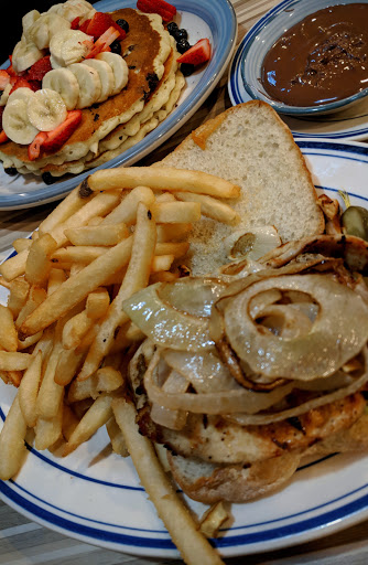 The servers here are so great! They are very kid friendly. The prices are low and the portions are large. The food is very good. My favorites are the Fish and Chips, and the vegetable omelette.