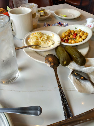 It all depends on the day. Breakfast comes with lil muffins and if you make it for the special they toss in coffee and a lil juice. Lunch also has specials. Recently expanded and gives large portions you can share or take home. Dinner comes with salad, drink and desert. A great neighborhood place but the parking is hard. Family owned and on the weekends there are long lines. The new section is drafty in the cold weather.