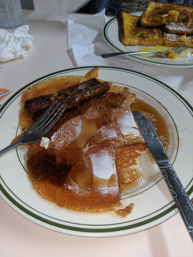 The food is always good & the service friendly & fast. My only complaint is the pancakes used to be bigger