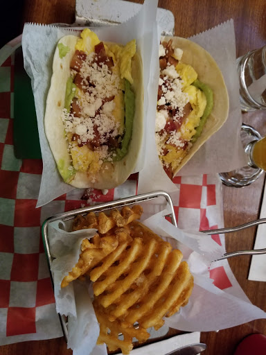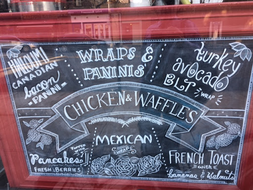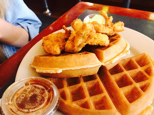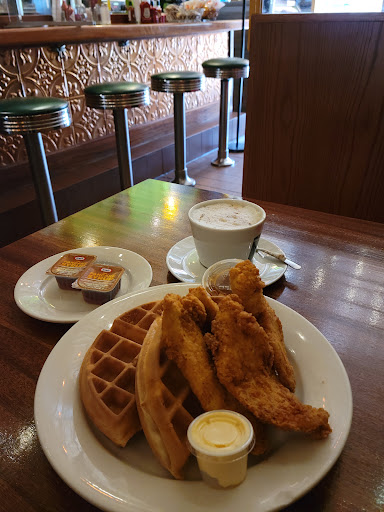 Small, cozy joint that serves great chicken and waffles. I like the coffee, and their orange juice is freshly squeezed.