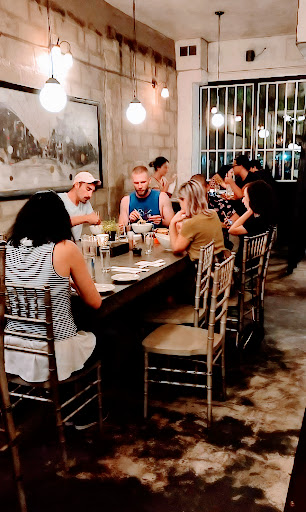 Got here after work on Fri night w no rsvp.. theres only 2 rectangular table and bar seats. Its a cozy spot but definitely fills up around 7pm. Grabbed a seat by the window and its pretty neat that u can put ur bags and thangs underneath the table. It would be awesome if they had a hook too for coats/etc. Anyways, we ordered a bunch of things to try. The uni ikura shot (very small so its not meant for sharing), salmon w avocado roll, veggie gyoza, pork buns. The uni ikura shot was pretty good it has rice and ikura w uni slices. Its expensive for a small shot tho. The roll and veggie gyoza was good. The gyoza looks super cool.. see pics!! The pork buns however, bun was dried and hard.. pork was dried and tough. Didnt like it. We each had a bowl of pork cloudy soup ramen (top 3 on the menu). Like the fact that it comes w extra soup on the side so u can thin out the soup to ur liking or if ure slurrrping slow and the noodles starts soakin up the soup u can add more! I thought the ramen was decent, the noodle texture definitely did not take like the ramen im used to.. tasted and looked very much like instant ramen (wriggly). But it was pretty okay. Service was definitely impeccable. The staff was attentive and came to check on us many times. Also refilled our water!!