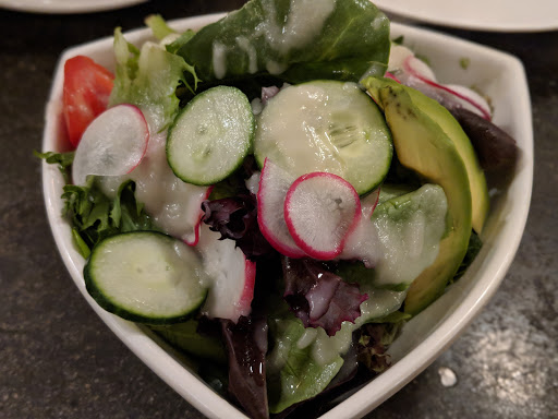 Small place on a side street that definitely produces delicious dishes. The ramen bowls are tasty, especially when spices are added to make it to your liking. The sushi rolls are very simple and basic...they seem to be something that you would have accompany your ramen or other main dish, not rolls you would have on their own as a main dish/dinner. The interior is nice, with community tables, solid bench chairs and well lit. The restroom is a rolling door near the back of the restaurant and it is quite amusing to watch people try to figure out how it works! Downsides of this restaurant include portion size for price paid and lack of sushi selection. It is recommended to order extra noodles on the side if you are getting ramen. Happy hour specials currently include $3 glasses of sake and $3 Orion beers. Lunch specials seem like they would be a good deal as well. All in all, a very good place to get a bite to eat!